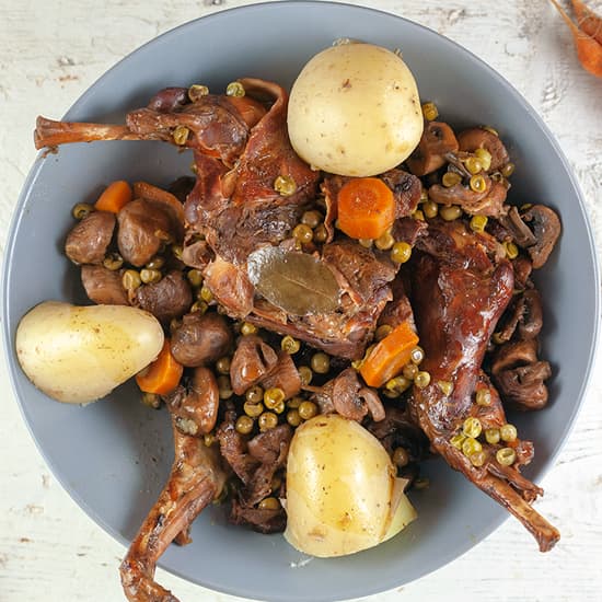 Recept voor 4 personenKonijn met sinaasappel uit de slowcooker is een feestelijk vleesgerecht met champignons, erwtjes en meer. Extra lekker met aardappels. Naar recept