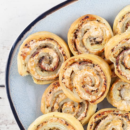 30 minuten bereidingstijdDeze bladerdeeghapjes met geitenkaas zijn makkelijk om te maken met weinig ingrediënten. Ideaal voor een feestje en extra lekker als ze nog een beetje warm zijn. Naar recept