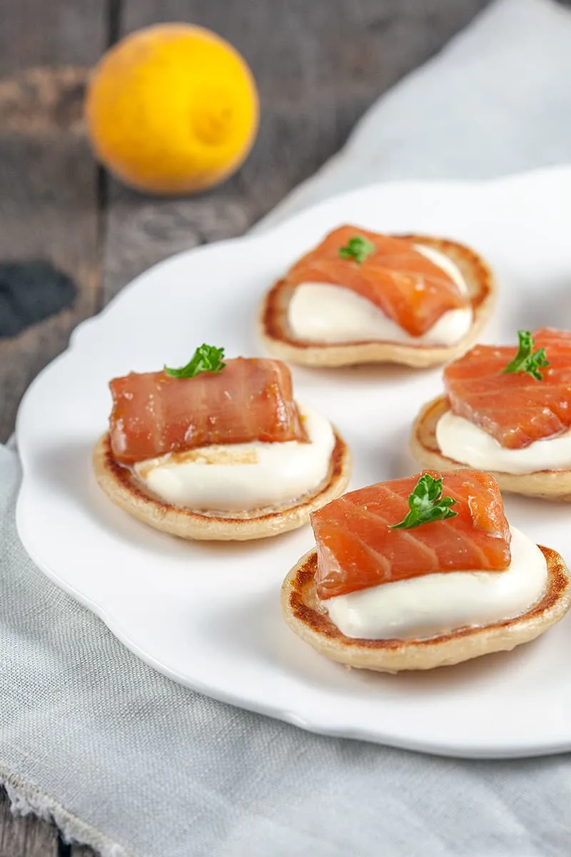 Hapjes met verse zalm ipv gerookte zalm zijn altijd nóg lekkerder! Deze blini's met zalm en yuzu zien er ook nog eens leuk uit voor de feestdagen.